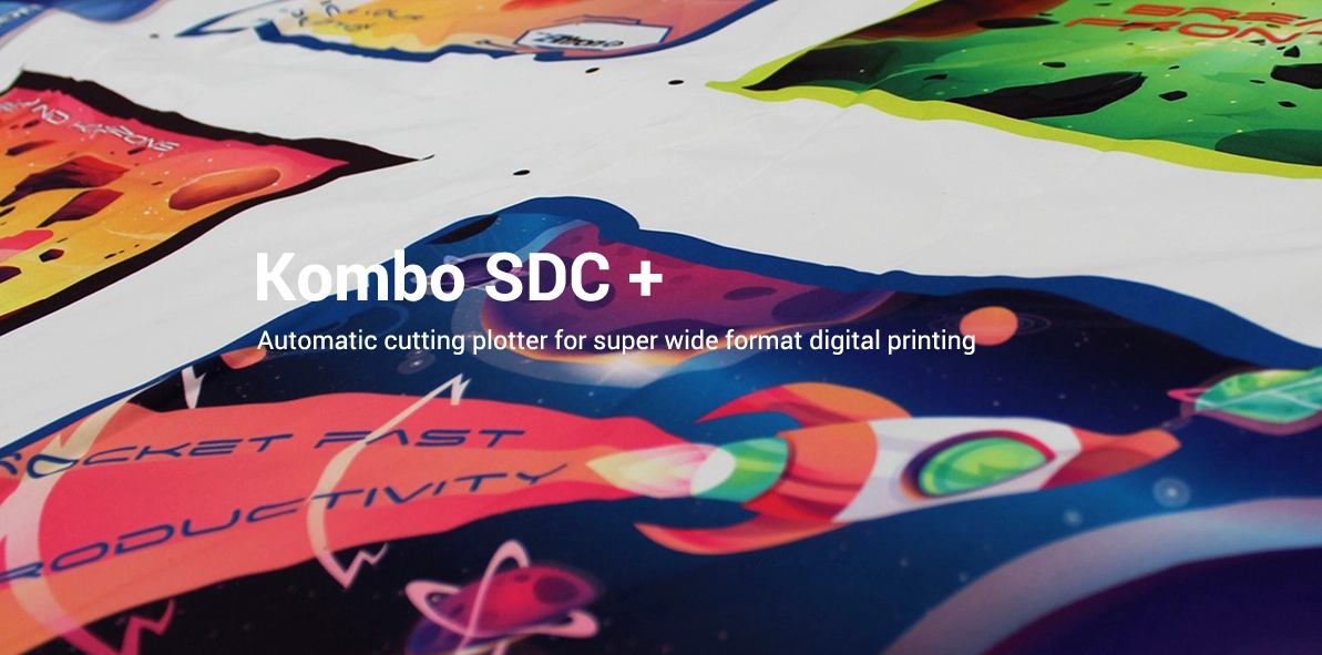 Kombo SDC+ perfectly allows you to effectively work both large rolls of material and many different types of rigid media with an excellent quality-price ratio. Maximum flexibility for materials used in visual communications and packaging, including super wide format like advertising banners, big promotional trade fair stand panels, promotional flags, and also packaging, POS displays, transparent containers, folders, binders, boxes, embossed logos, brochure holders and many more. Processes a wide range of materials with extreme precision (printed or not) like: forex, dibond, PVC, plastics, films, textiles, reboard, paper and cardboard, corrugated cardboard, foams.