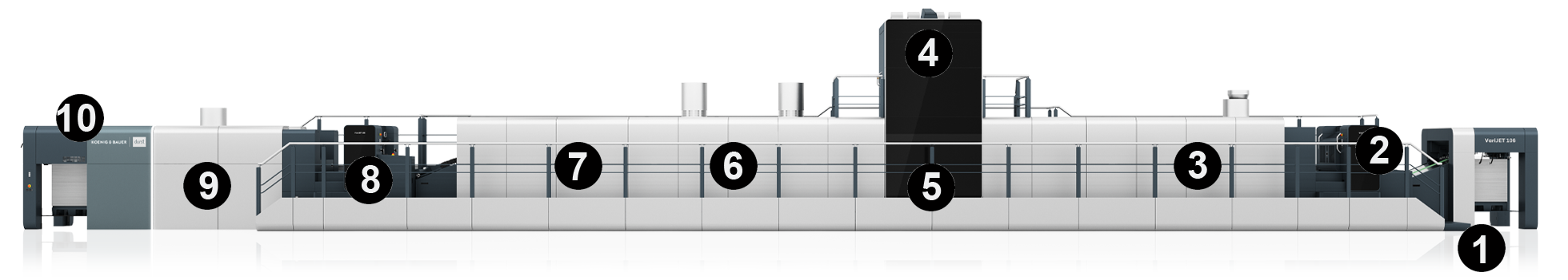 Whether as a pure digital printing system with integrated pre-coating and post-coating unit or as a hybrid system – the flexibility offered by the VariJET makes it unique and the most productive and cost-efficient hybrid printing system on the emerging digital packaging printing market.